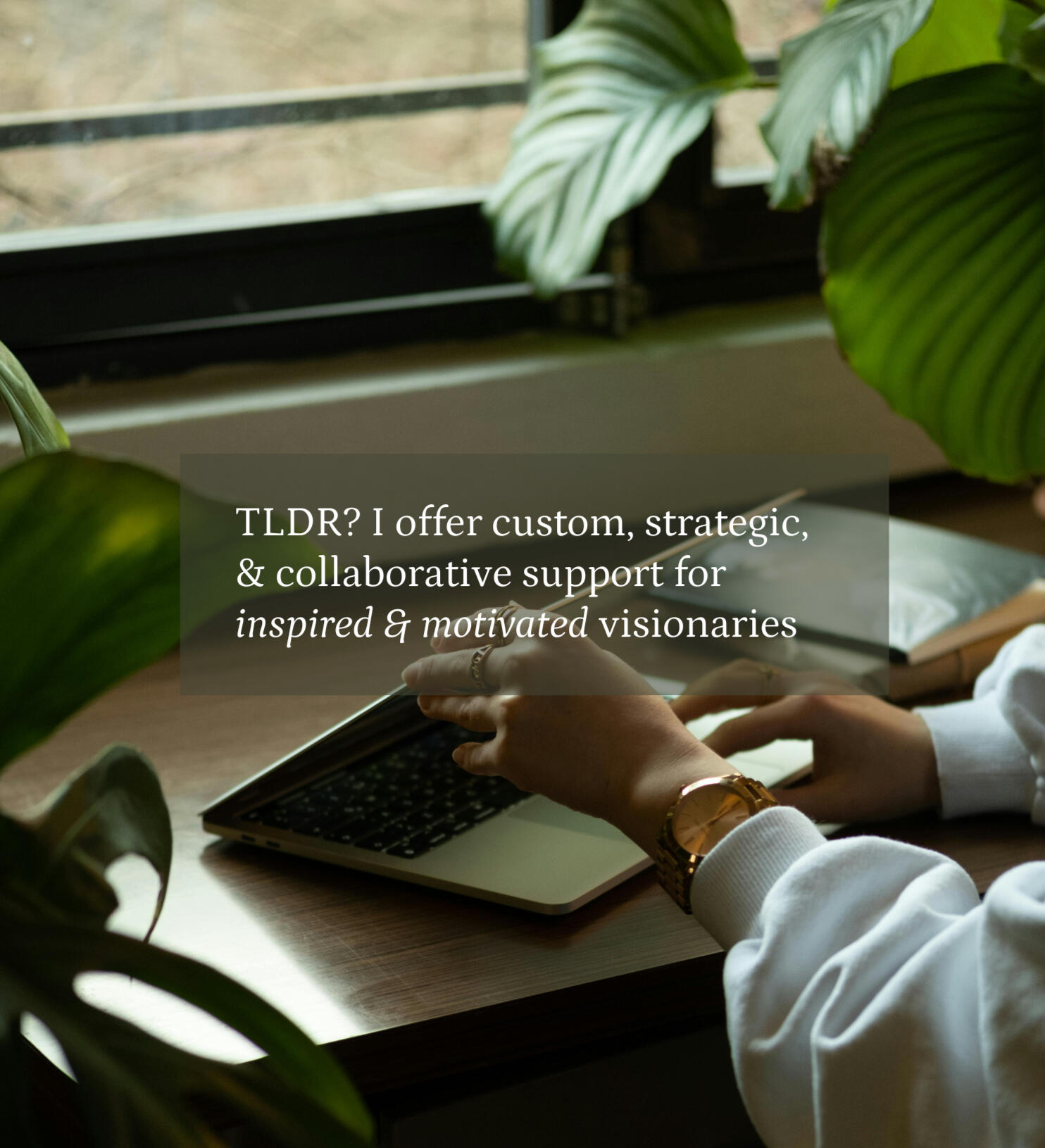 ▪️Overcoming your overwhelm: I'll support you from "How am I gonna do this?" to "I'm doing it!"▪️Reducing your decision fatigue: I'll turn your sticky-notes and scattered Google Docs into a clear, cohesive, and manageable plan▪️Becoming your idea's bestie: I'll ask the right questions at the right time so you can confidently move in the direction that is aligned for you▪️Expressing the value in your idea: How your idea is communicated matters; let's refine your voice, visuals, lead magnets, and PR strategy▪️Making it easy to make progress: Steady check-ins and pivot-support make a huge difference in the pacing and quality of idea-creation. Trust me, I know, and I'm here for it all!